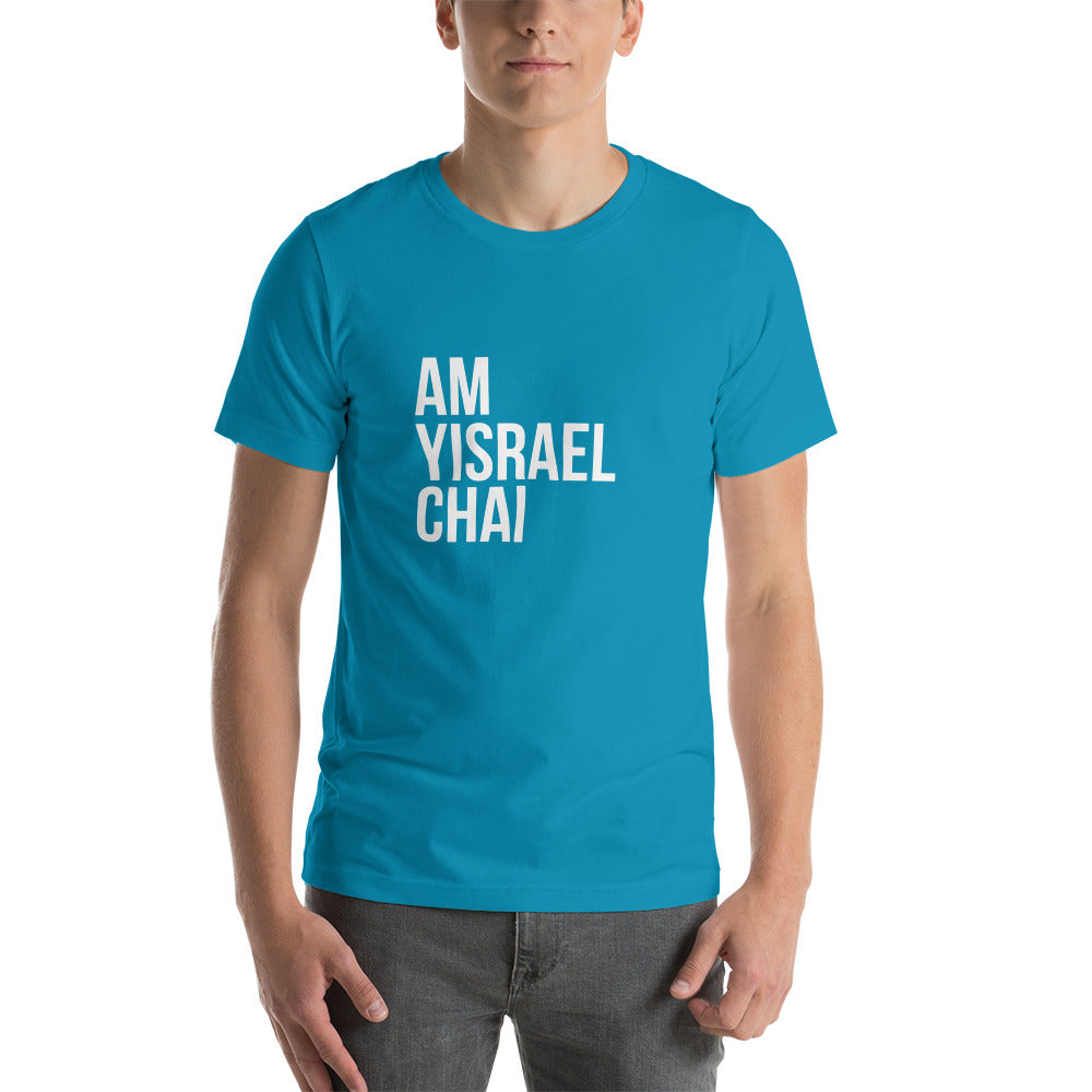 Am Yisrael Chai, that means the Nation of Israel lives forever, no matter how much the anti-Semites try to get rid of us. So let's celebrate our existence for over 5784 years with this soft and lightweight t-shirt, with the right amount of stretch. It's comfortable and flattering for all.